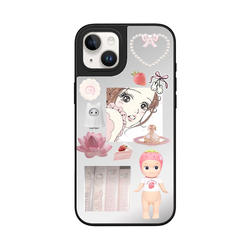 Inspired by Japanese girlcore and pastel nostalgia, this phone case blends dreamy anime eyes, strawberry sweets, baby dolls, and soft pink artifacts. Every sticker tells a story – from kawaii snacks to vintage manga tears. Perfect for those who carry a little softness and chaos in their hearts. Customize it with your own pastel symbols or leave it just as sweet as it is.